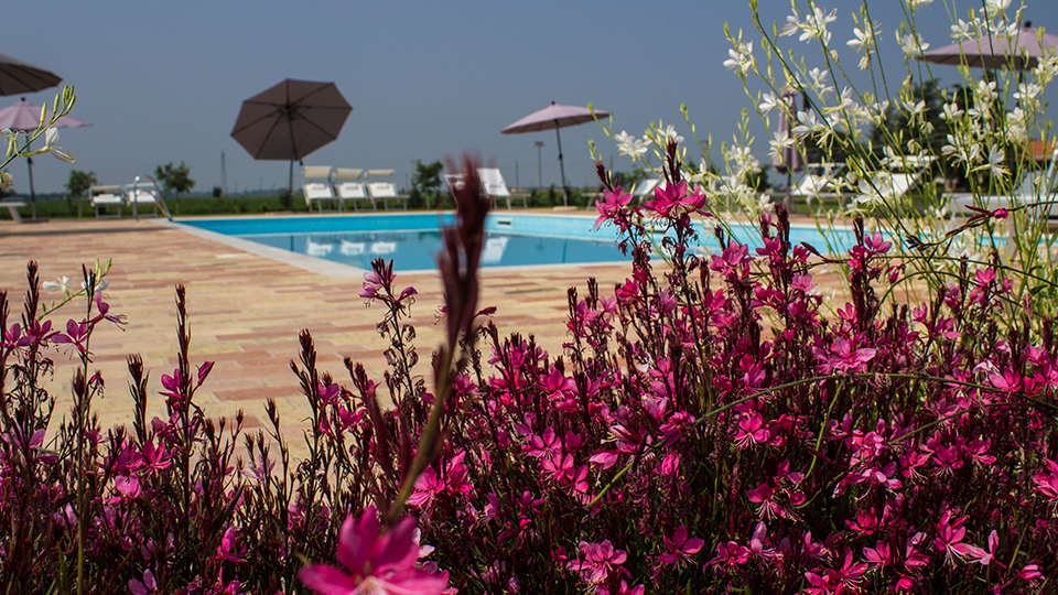 The newly built pool is a 15mx5mx1.35m, equipped with a large solarium with sunbeds and umbrellas available to guests, is surrounded by aromatic plants, colored and fragrant.