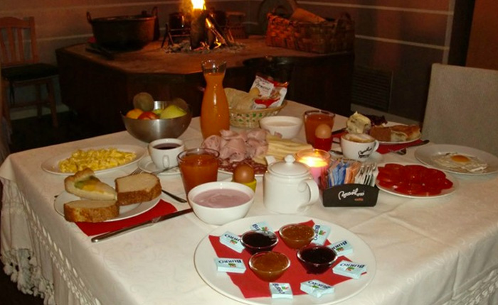 Le colazioni sono servite nella sala da pranzo dove domina una grande camino alla valesana, mentre nella stagione estiva sotto l’ampio portico esterno.